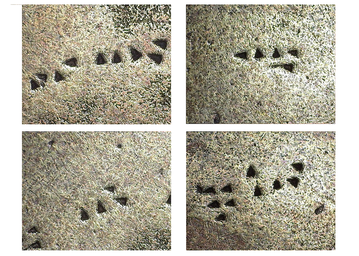 Figure 3 Microscopic views of the inscribed royal bowl with an unfinished inscription by king Minua (Bowl A)