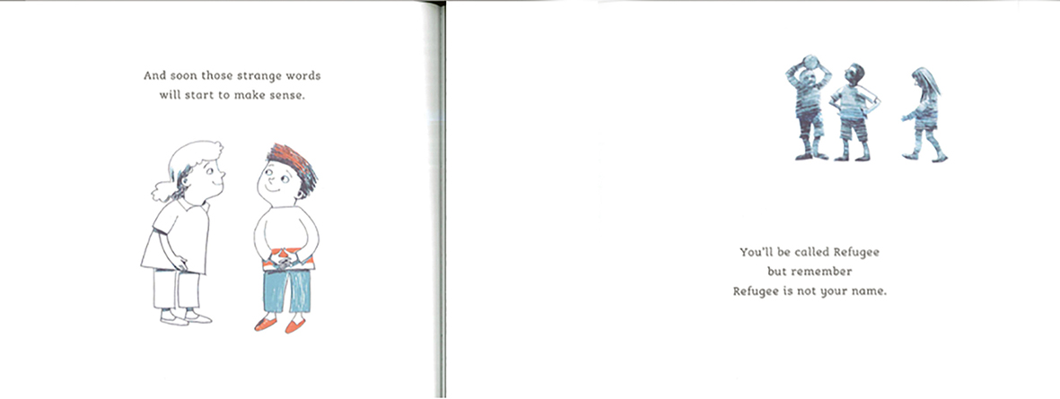 With this in mind, the research goal of this section is twofold: first, we propose specific content and sessions for a teaching project on the selected refugees’ narratives that can be carried out within a PPETs class; second, we provide a narrative content analysis (Clandinin 2013), along with a multimodal approach (Machin, Caldas-Coulthard, Milani 2016) that evolves around distinctive language and visual patterns in the texts in order to identify and analyse the discursive constructions of such categories as language, migration, belonging, homeland, race, and discriminatory stereotypes. Such goals are not new in the research field of the decoloniality of ELT through picture books, as the contributions by Bland (2018) and Ibrahim (2020) prove. In particular, the former encourages ELT practitioners to diverge from monomodal novel formats and to opt for such multimodal literary texts like picture books as a powerful instrument of human thought that serves to expand cognitive abilities and to foster the acquisition of new perspectives and intercultural awareness though the main literatures in English from nations throughout the world (Bland 2018, 7-8). Similarly, the latter author examines the benefits of using multilingual picture books in the ELT classroom to achieve more inclusive teaching and learning practices by questioning the use of exclusively English-language books and the appropriateness of English to represent every culture when attempting to teach interculturality (Ibrahim 2020, 31). More incisively, it is also worth mentioning the PEPELT project,5 which is built on a community of practice that supports teachers and professionals in the field of language education to critically explore, select and use picturebooks in the classroom to develop language as well as intercultural understanding and an awareness of global issues.