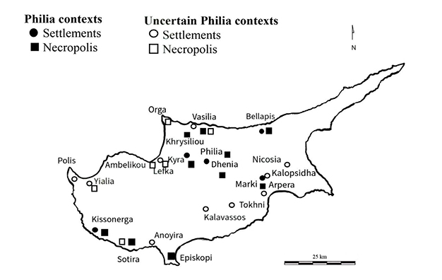 Figure 1 Map of Cyprus indicating Philia and uncertain Philia contexts