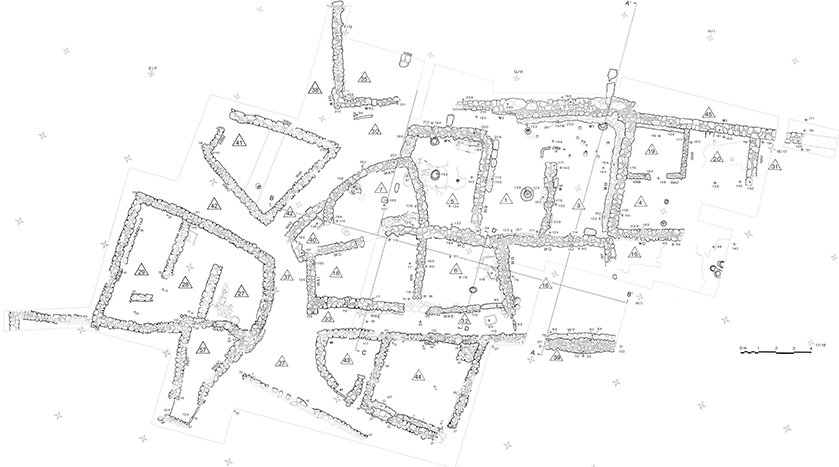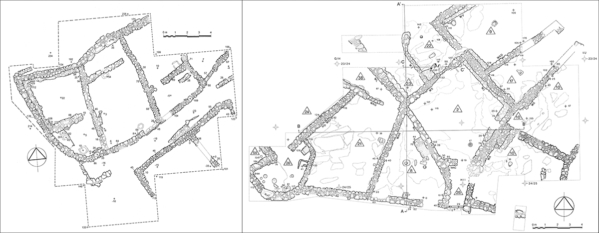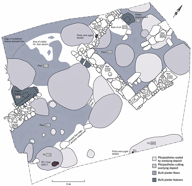 34 Structure 86, characterised by stone walls (Stone House), experienced two phases of occupation, Level 222, and Level 90. Peltenburg 1998, 53, fig. 44.