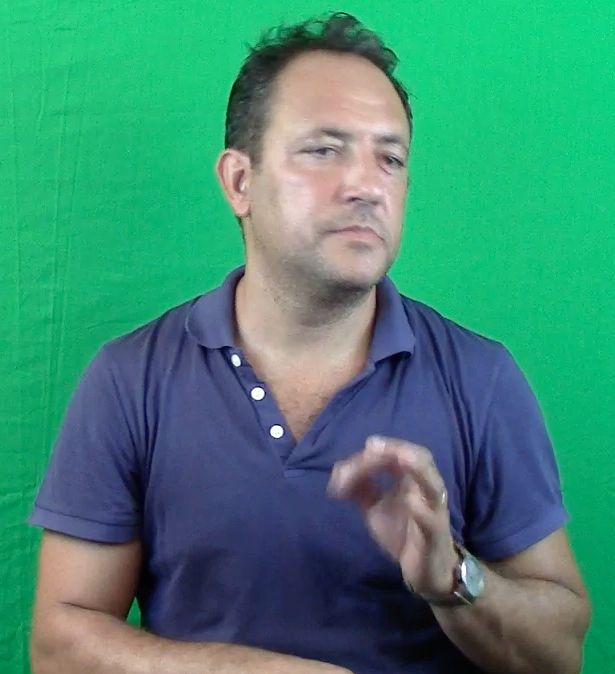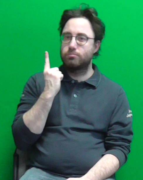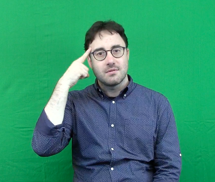 It is important to notice that assimilation can be total or partial. In total assimilation, all features of the neighbouring form are copied. By contrast, in partial assimilation, only some features are copied. To see the difference between these two types of assimilation, we observe different realisations of intelligent. This is a compound sign formed by the sign head and a Y-handshape classifier conveying the concept of a large amount. In its original form, the first part of the compound is articulated with extended index finger, as shown below.