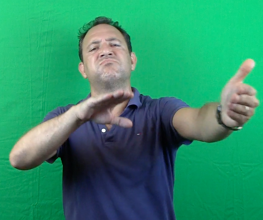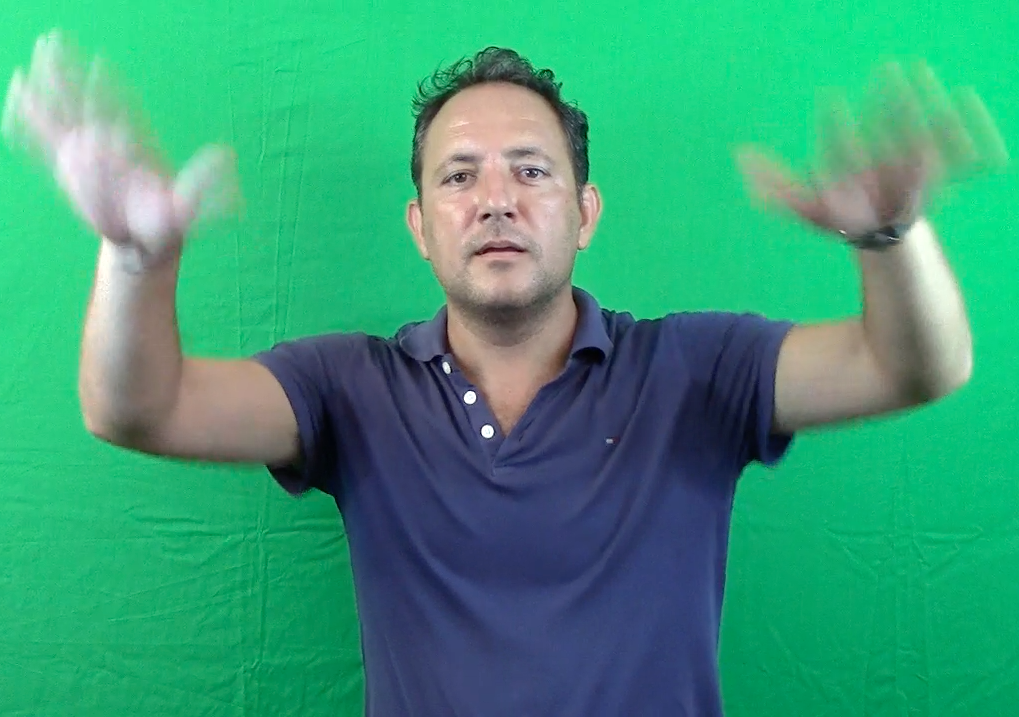 Assimilation is a process by which a sign takes on (i.e. assimilates) one or more features of a phoneme belonging to a neighbouring sign. This phonological process can affect all phonological parameters of a sign. The most typical case is handshape assimilation, which occurs when the handshape of a sign becomes more similar to the handshape of a sign close to it. Below, we can observe an example of assimilation.